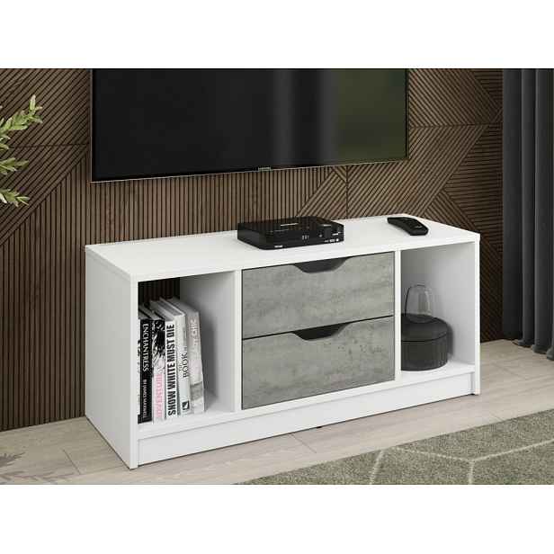 TV stolek Sten 100 cm, bílý/šedý beton