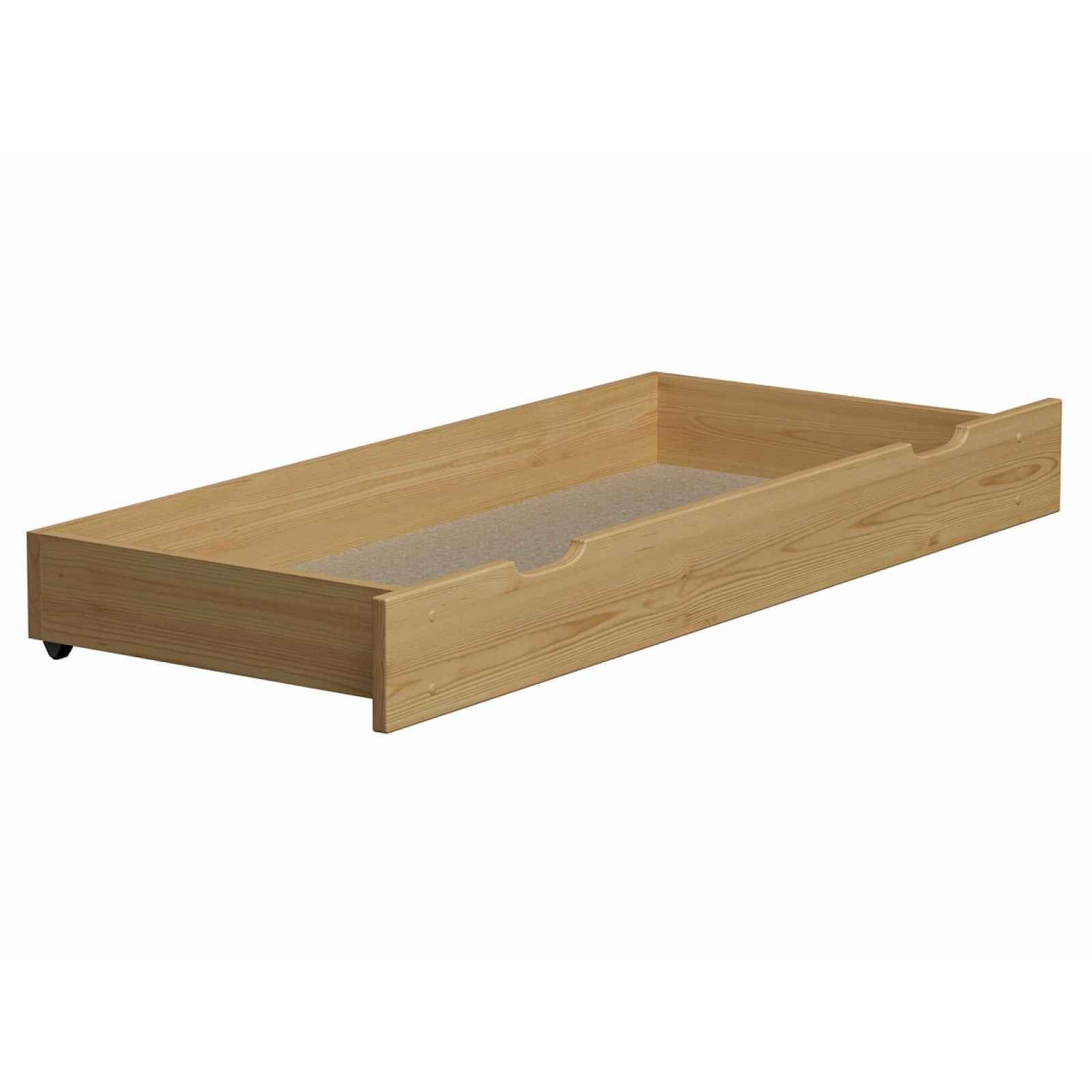 Zásuvka pod postel 150 cm Materiál: masiv borovice Rozměry (šxhlxv): 150 x 57 x 19,5 cm; vnitřní šířka 140 cm, vnitřní hloubka 53 cm Dodáváno v demontu. Záruka 24 měsíců.