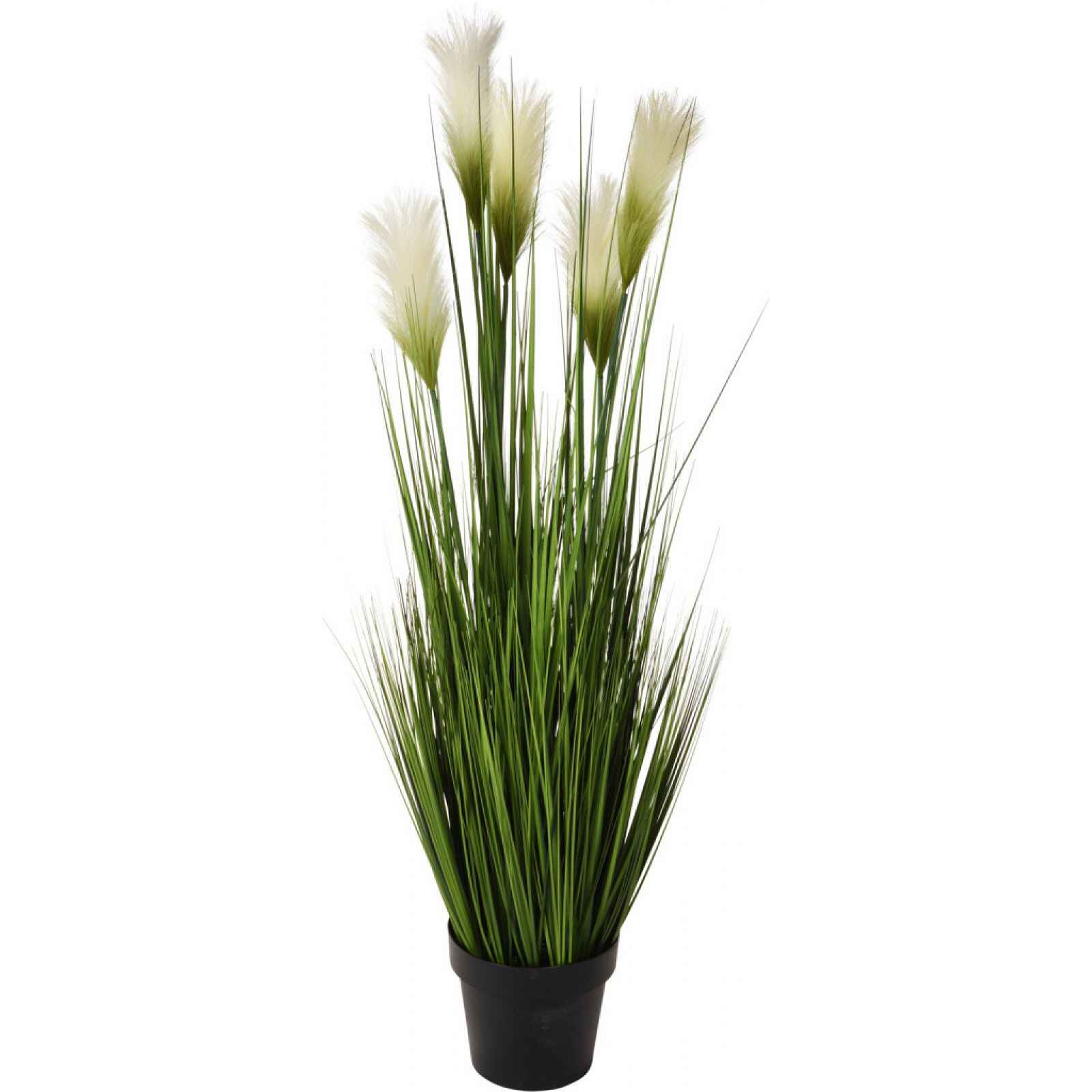 Umělá rostlina v černém květináči v podobě kvetoucí trávy je dokonalou dekorací do interiérů, na balkony nebo terasy. Zelená tráva s pěti květy vypadá jako skutečná květina, která zaujme svou elegancí. Výška 118 cm. - umělá květina - materiál: plast - druh: kvetoucí tráva - 5 x květ - barva rostliny: zelená - barva květináče: černá - lze umístit samostatně nebo v kombinaci - dekorace do interiéru, na balkon či terasu - celková výška: 118 cm - průměr květináče: 14 cm