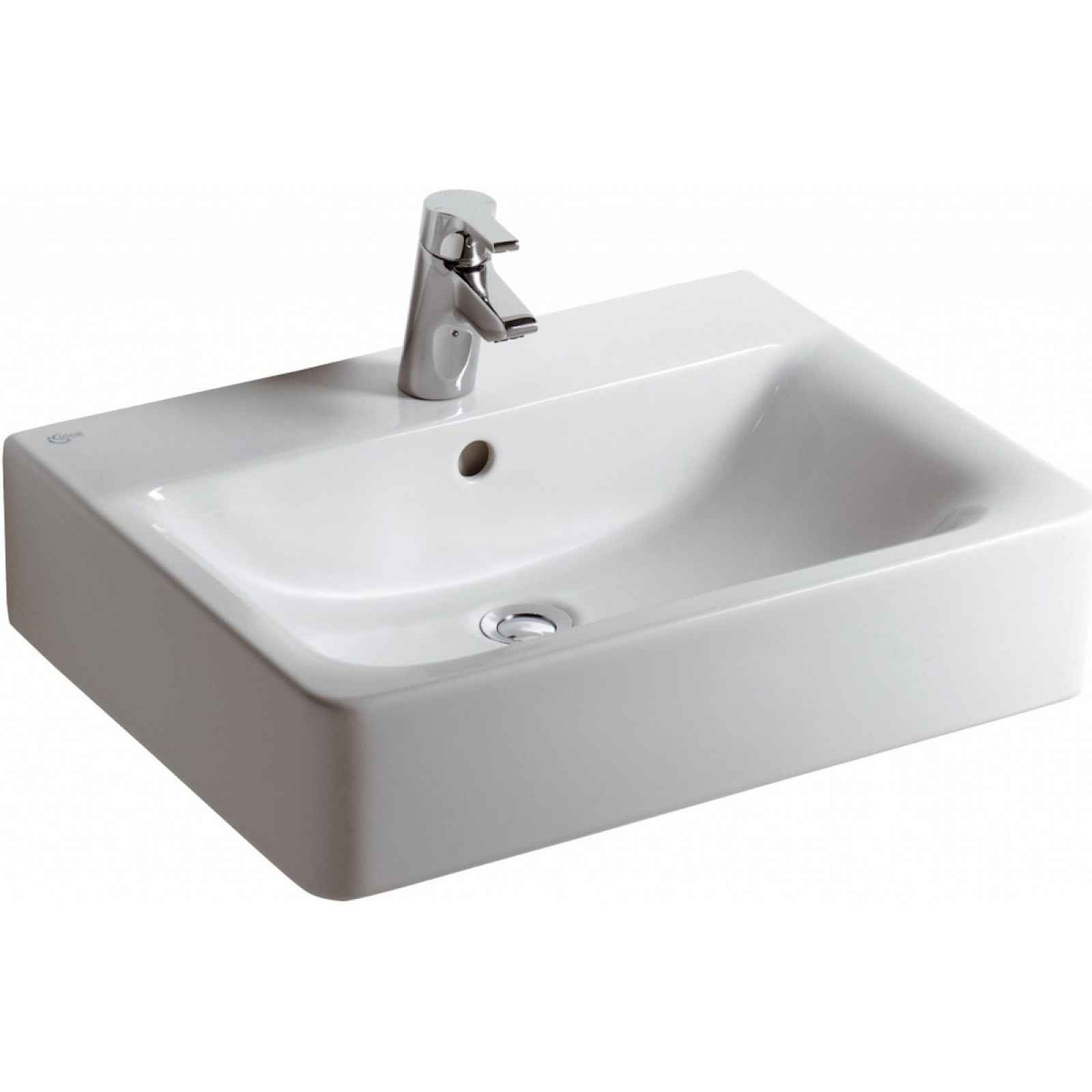 Umyvadlo s otvorem pro baterii uprostřed o šířce 55 cm, hloubce 46 cm a výšce 17,5 cm. Balení bez sifonu a baterie. Montážní sadu je nutné dokoupit.