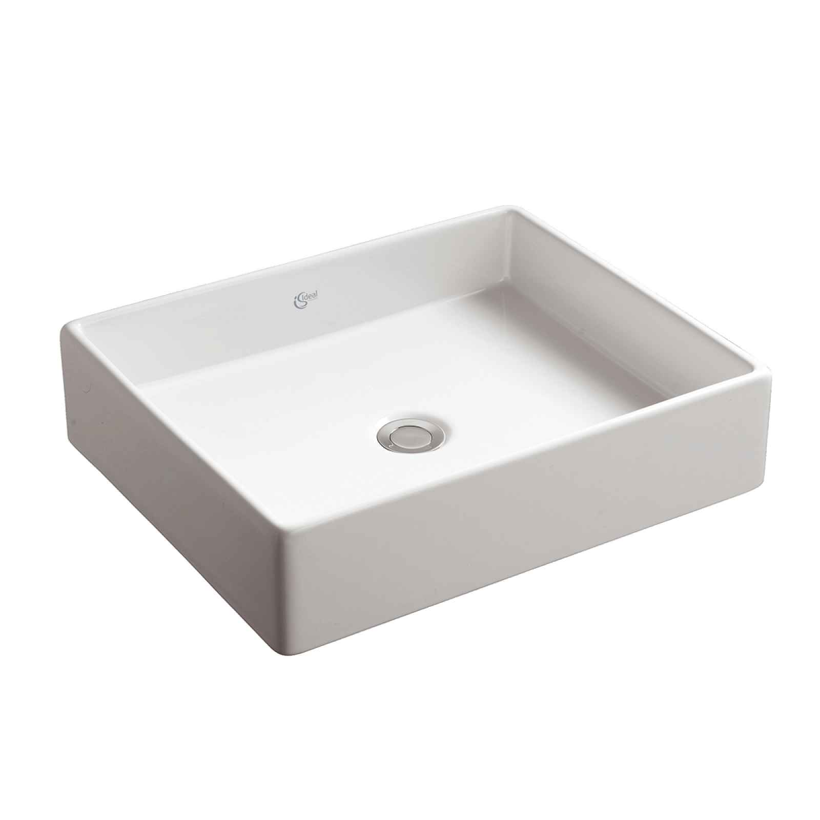 Umyvadlo na desku bez otvoru pro baterii o šířce 50 cm, hloubce 42 cm a výšce 13,5 cm. Balení bez sifonu a baterie.