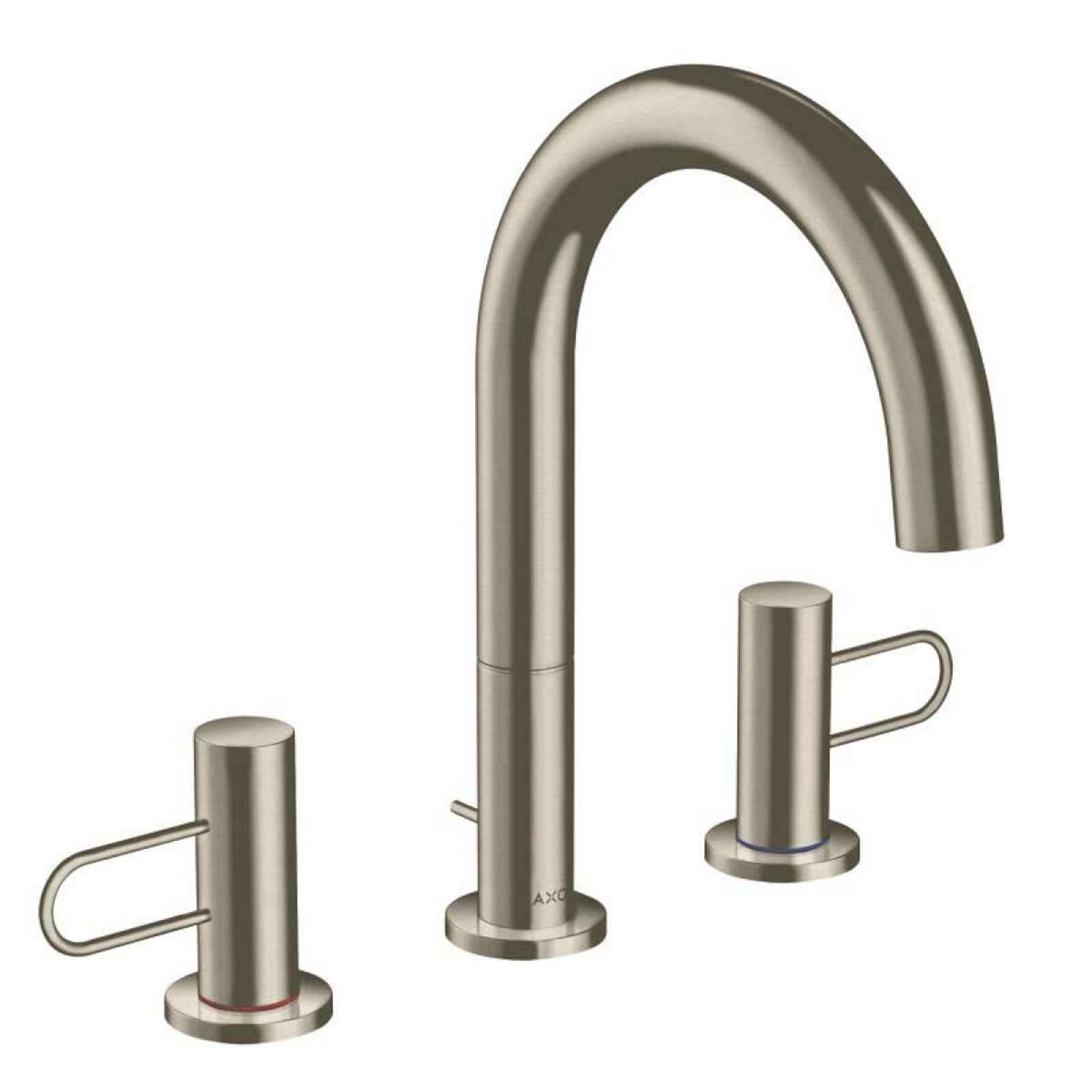 Kohoutková stojánková umyvadlová baterie s výpustí. V barevném provedení kartáčovaný nikl. Průtok baterie je 5 litrů/minutu. Výška baterie je 26,8 cm. Ramínko je ve výšce 15,7 cm. S matným povrchem.