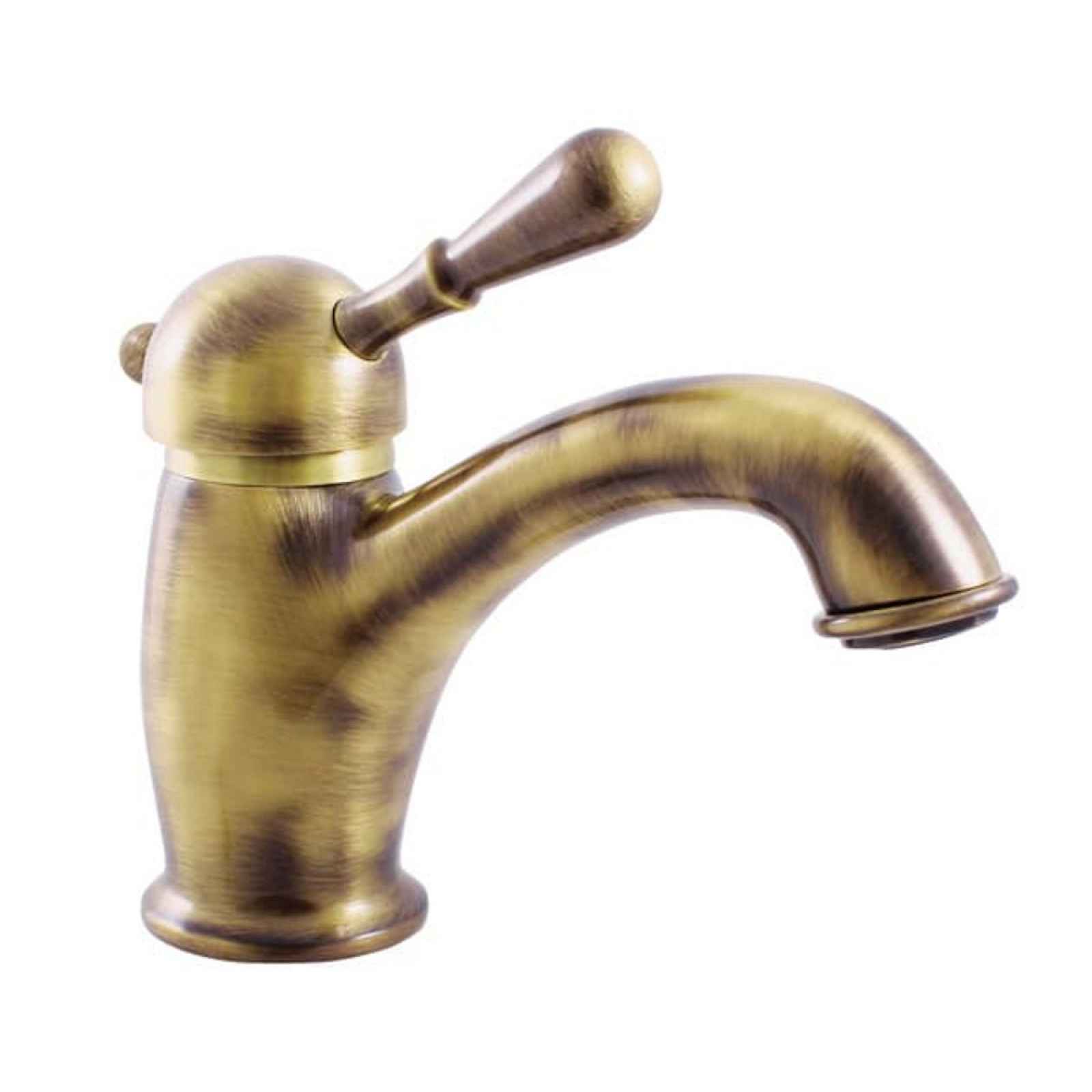 Páková stojánková UMYVADLOVÁ BATERIE bez výpusti. V provedení stará mosaz. Výška baterie je 15 cm. Připojení flexi hadiček G 1/2"