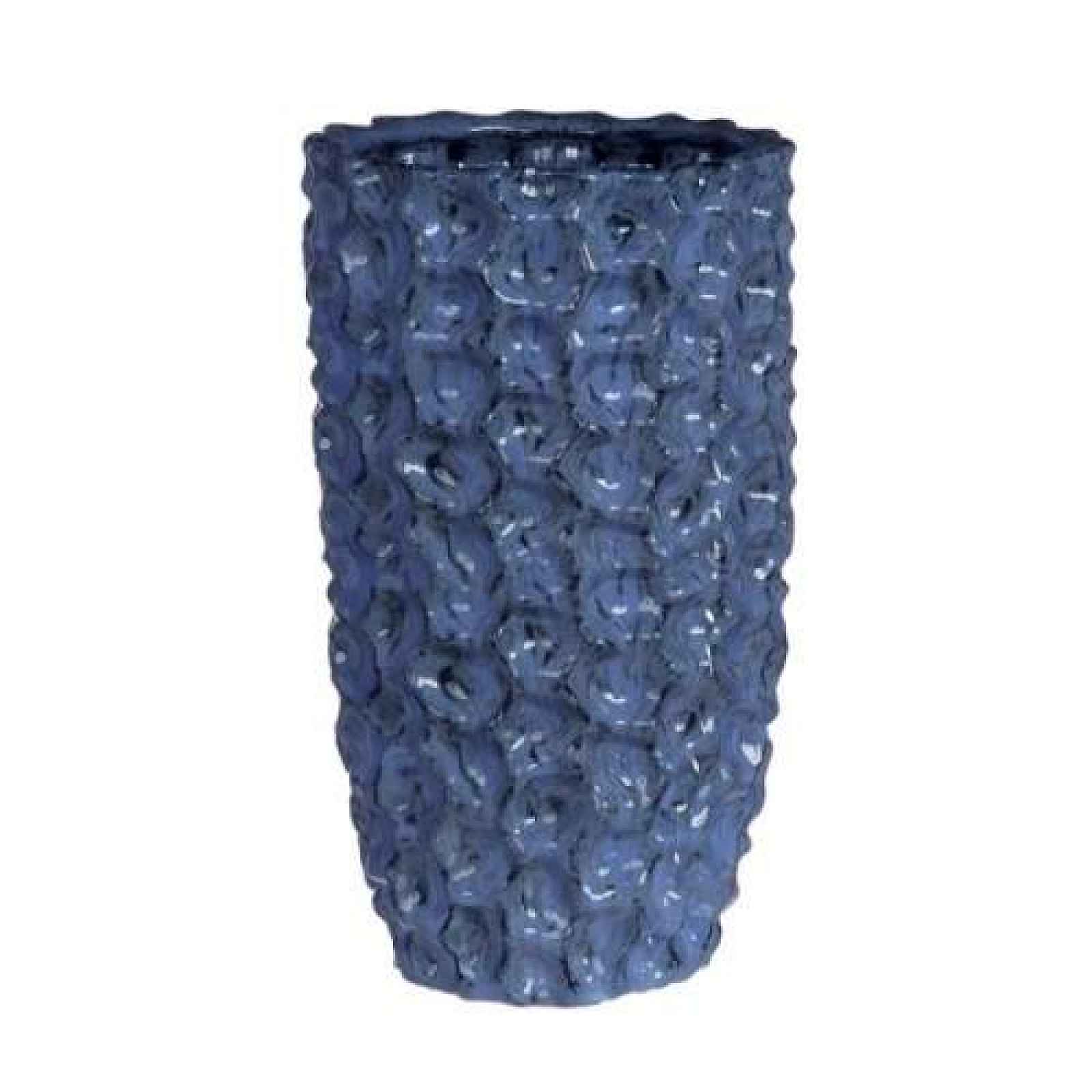 Váza válec DENTED keramika glazovaná modrá 25cm