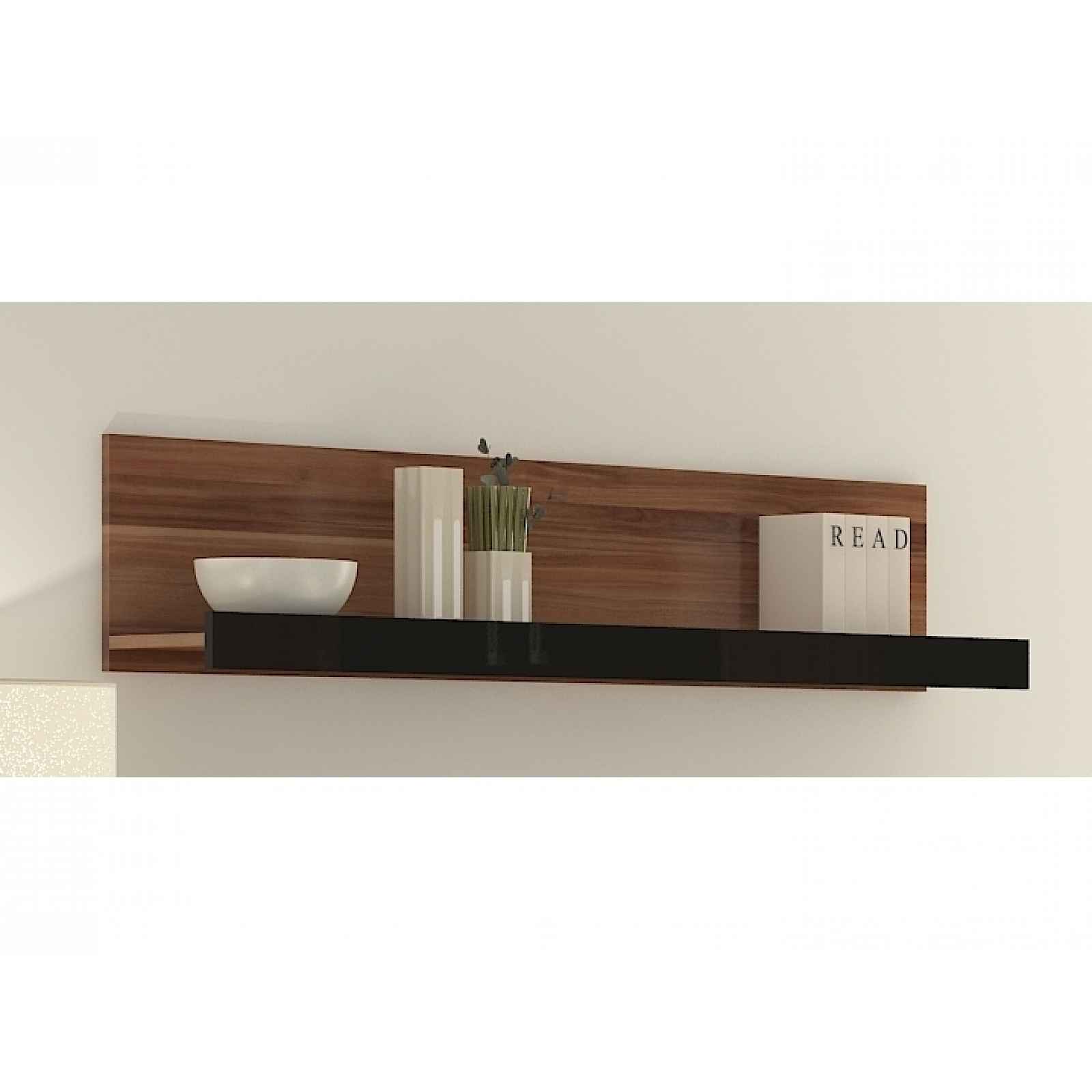 Nástěnná police Barva: švestka wallis/černý lesk Materiál: lamino 16 mm Rozměry (šxvxhl): 130 x 30 x 22 cm Dodává se v demontu. Záruka 5 let.