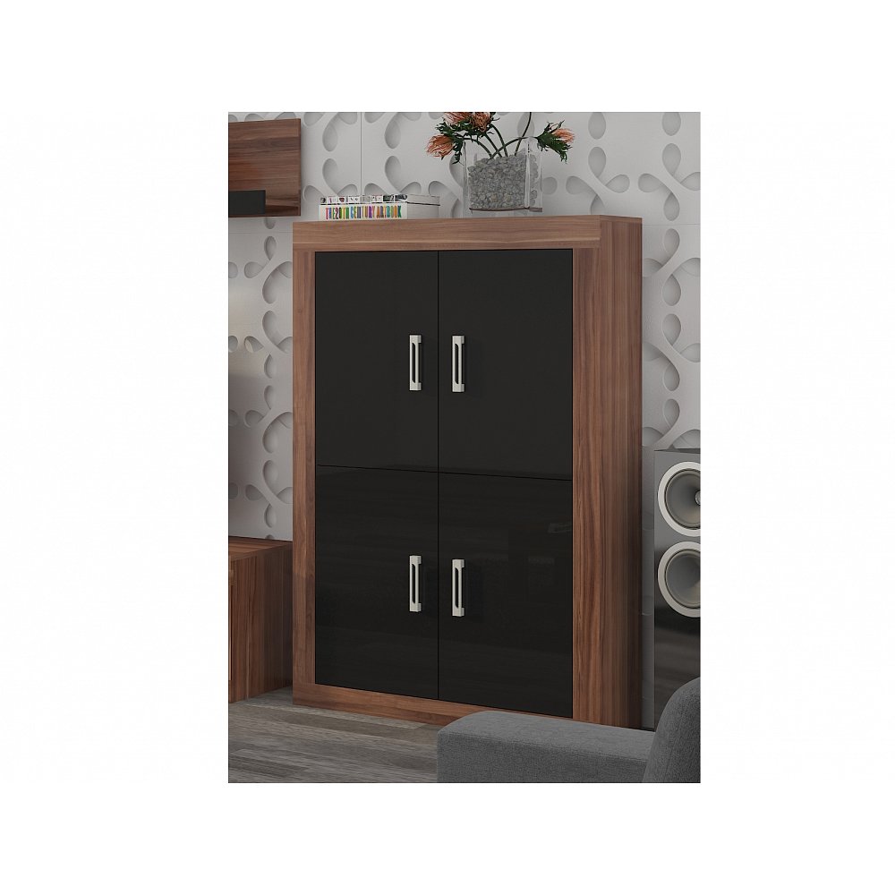 Policový regál s dvířky Barva: švestka wallis (korpus)/černý lesk (dvířka) Materiál: lamino 16 mm Rozměry (šxvxhl): 90 x 141 x 34 cm Dodává se v demontu. Záruka 5 let.