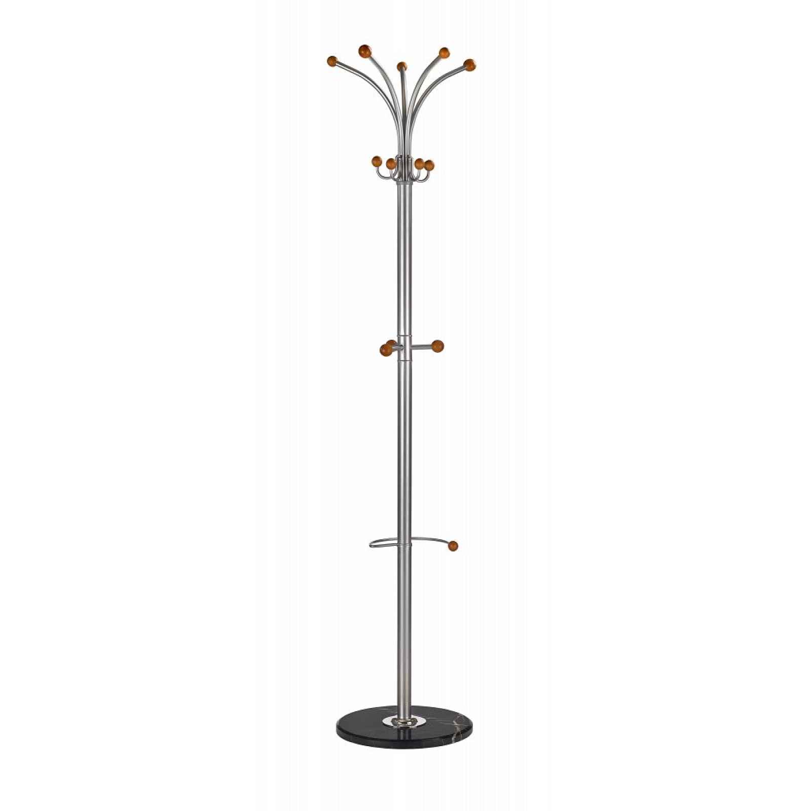 Věšák W46 je pomocník, který se hodí nejen do domácností, ale vaši přízeň jistě získá v restauracích, kavárnách, jídelnách, barech, hotelech apod. Věšák se vyrábí z ocele a masivního dřeva. Podstava je z přírodního kamene. Provedení stříbrná. Dodáváme v demontu. Rozměry: - průměr podstavy 38 cm - výška 180 cm