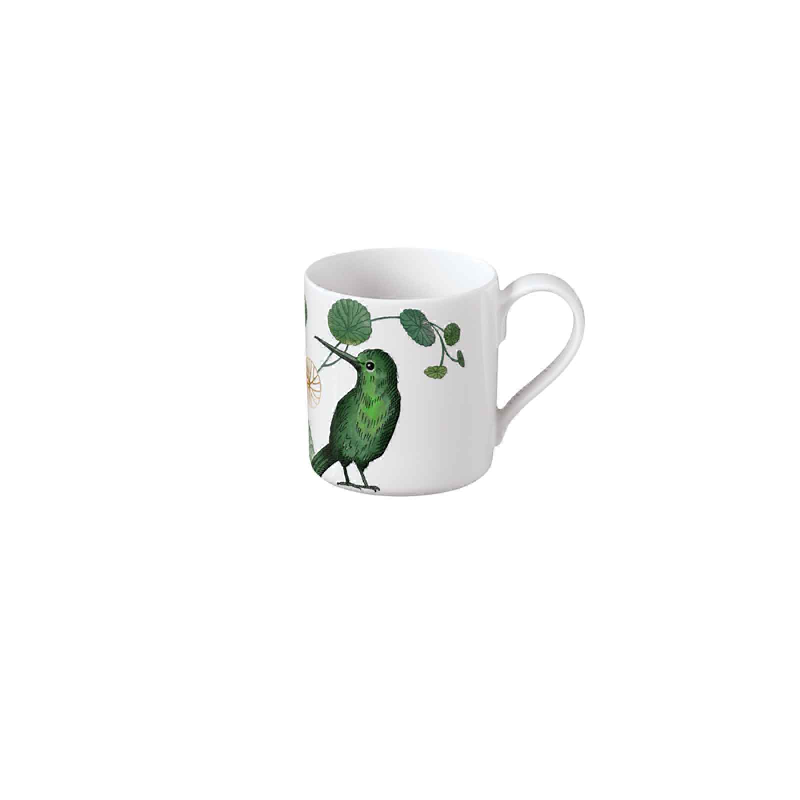 Servírujte kávu ve vašem stylu díky porcelánovému šálku na espresso z kolekce Avarua. Šálek pochází od německé tradiční porcelánky Villeroy & Boch a byl vyroben z prémiového kostního porcelánu o objemu 0,08 litru. Zdodbí jej obrázek kolibříka a exotických rostlin společně s decentními zlatými akcenty. Kolekce porcelánu Avarua od Villeroy & Boch. Trendy dekor s velkými květinovými vzory, tak jak je dnes vídáváme na textiliích či módních tapetách do domácnosti, zdobí kolekci Avarua. Svým osobitým designem ji vynáší mezi nejkrásnější kolekce německé porcelánky Villeroy & Boch. Exotické motivy květin s nádechem extravagance a dobrodružství jsou poctou cestování anglického mořeplavce a objevitele Jamese Cooka, jenž při své výpravě přes Tichý oceán objevil nádherné Cookovy ostrovy. Jejich hlavní město – Avarua – dalo jméno této krásné kolekci. Její opulentní design ukazuje svět tropických ptáků a exotických rostlin v uklidňujících živých barvách, navíc doplněných o jemné filigránové akcenty z pravého zlata. Společně se zlatými příbory MetroChic d’Or pak vykouzlí na vašem prostřeném stole luxusní podívanou. Trendy kolekce porcelánu Avarua německé porcelánky Villeroy & BochAtributy série: minimalistické tvary porcelánu, exotický dekor, zlacení, dvě základní barvyZákladním materiálem je prémiový kostní porcelánKalcinovaný kostní popel dodává porcelánu velkou odolnostVýsledkem je jemný, průsvitný, avšak velmi odolný porcelán o nižší vázeNepodléhá praskání, na závěr je glazován pro atraktivní lesklý vzhledNeglazované části jsou vyleštěné tak, aby nepoškrábaly stůl či nádobí při stohováníJemné zlaté akcenty jsou na porcelán malovány ručněZaglazování zlatého dekoru umožňuje občasné mytí v myčce nádobí při nízké teplotěNádobí nelze kvůli zdobení zlatem používat v mikrovlnné trouběRazítko na spodní straně informuje o značce a zemi původuPoužívány energeticky úsporné plynové vypalovací pece ohleduplnější k životnímu prostředí Prémiový kostní porcelán, jeho výhody a výroba. Prémiový kostní porcelán je specifickým tím, že se při jeho výrobě 48 % surovinové směsi nahrazuje kalcinovaným kostním popelem. Ten dodává výslednému materiálu odolnost a umožňuje tak výrobu porcelánu s tenčí stěnou a tedy i nižší váhou, jenž je pro vhodný pro každodenní použití. Vypaluje se 6 až 8 hodin při vysoké teplotě 1230 °C, posléze se zhruba v půli vypalovacího procesu zchladí na 650 °C. Tím získává silnou strukturu a zmiňovanou odolnost, nepraská a je odolnější oproti klasickému porcelánu.Při dekorování zlatem se výrobek vypaluje dokonce čtyřikrát. Vypálený zlatý dekor se nazývá zaglazený a při mytí v myčce je třeba používat šetrný mycí program a kvalitní mycí prostředky. Porcelán zdobený zlatým kovem není vhodný do mikrovlnné trouby. Neglazované části porcelánu se leští diamantovým pásem. Nemohou tedy poškrábat stůl či glazuru při stohování talířů.