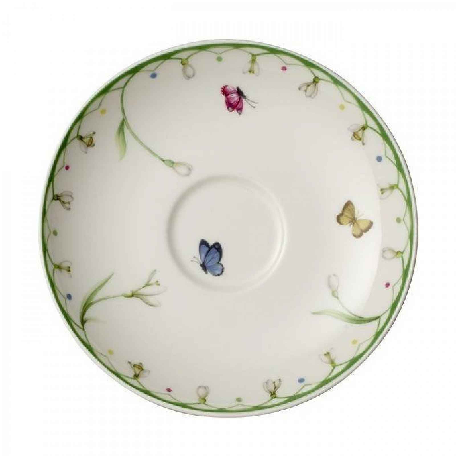 Porcelánový podšálek k šálku na kávu z kolekce Colourful Spring byl vyroben z prémiového porcelánu o průměru 14 cm. Zdobí jej jemný jarní motiv se sněženkami a motýly, který ladí se šálkem na kávu stejné kolekce. Kolekce porcelánu Colourful Spring od Villeroy & Boch. Veselá jarní kolekce Colourful Spring přinese do vaší domácnosti svěží barvy. Něžný motiv sněženek a poletujících barevných motýlů zdobí celou sérii. Díky nekomplikovaným tvarům porcelánu navodí u vašeho prostřeného stolu uvolněnou a hřejivou atmosféru pohody. Jarní série porcelánu Colourful Spring německé porcelánky Villeroy & BochPremium porcelán čistých tvarů s dekorem sněženek a motýlůJemné a přesto výjimečně odolné tělo nádobí nepodléhá praskáníHřejivý barevný dekor glazován pro atraktivní lesklý vzhledNeglazované části vyleštěné tak, aby nepoškrábaly stůl či nádobí při stohováníKvalitní glazura umožňuje každodenní mytí v myčce nádobíNádobí je možné používat i v mikrovlnné trouběRazítko na spodní straně informuje o značce a zemi původuPoužívány energeticky úsporné plynové vypalovací pece ohleduplnější k životnímu prostředí Premium porcelán, jeho výhody a výroba. Premium porcelán je určen pro každodenní použití, tak aby dělal svému majiteli radost. Je vhodný do mikrovlnné trouby a díky diamantově tvrdé glazuře také pro mytí v myčce nádobí. Vypaluje se 6 až 8 hodin při vysoké teplotě 1230 °C, posléze se zhruba v půli vypalovacího procesu zchladí na 650 °C. Tím získává silnou strukturu a odolnost, nepraská a je odolnější oproti klasickému porcelánu. Po vypálení se výrobek glazuje a opět vypaluje pro atraktivní lesklý vzhled. Po nastříkání či ruční aplikaci dekoru dochází ještě ke třetímu vypalování po dobu 75 minut. Dekor je tak stálobarevný a netrpí používáním v myčce. Neglazované části porcelánu se leští diamantovým pásem. Nemohou tedy poškrábat stůl či glazuru při stohování talířů.