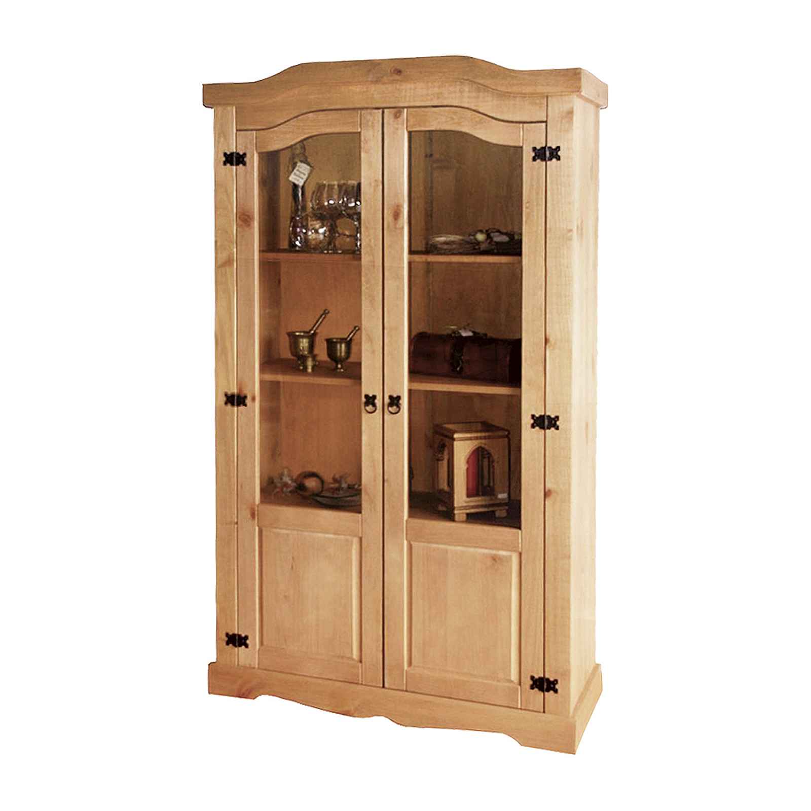Policová vitrína z masivu rozměry [cm] 104 x 42 x 186 (š x h x v) masiv borovice povrchová úprava - voskované v medovém odstínu 2 dvířka: 2/3 prosklená, 1/3 plná kovové zdobené úchyty BALENO - KARTON: 2 ks (rozměry, š/v/d: 40 x 11 x 98 cm, 51 x 11 x 183 cm) Dodává se v demontu. Záruka 24 měsíců.