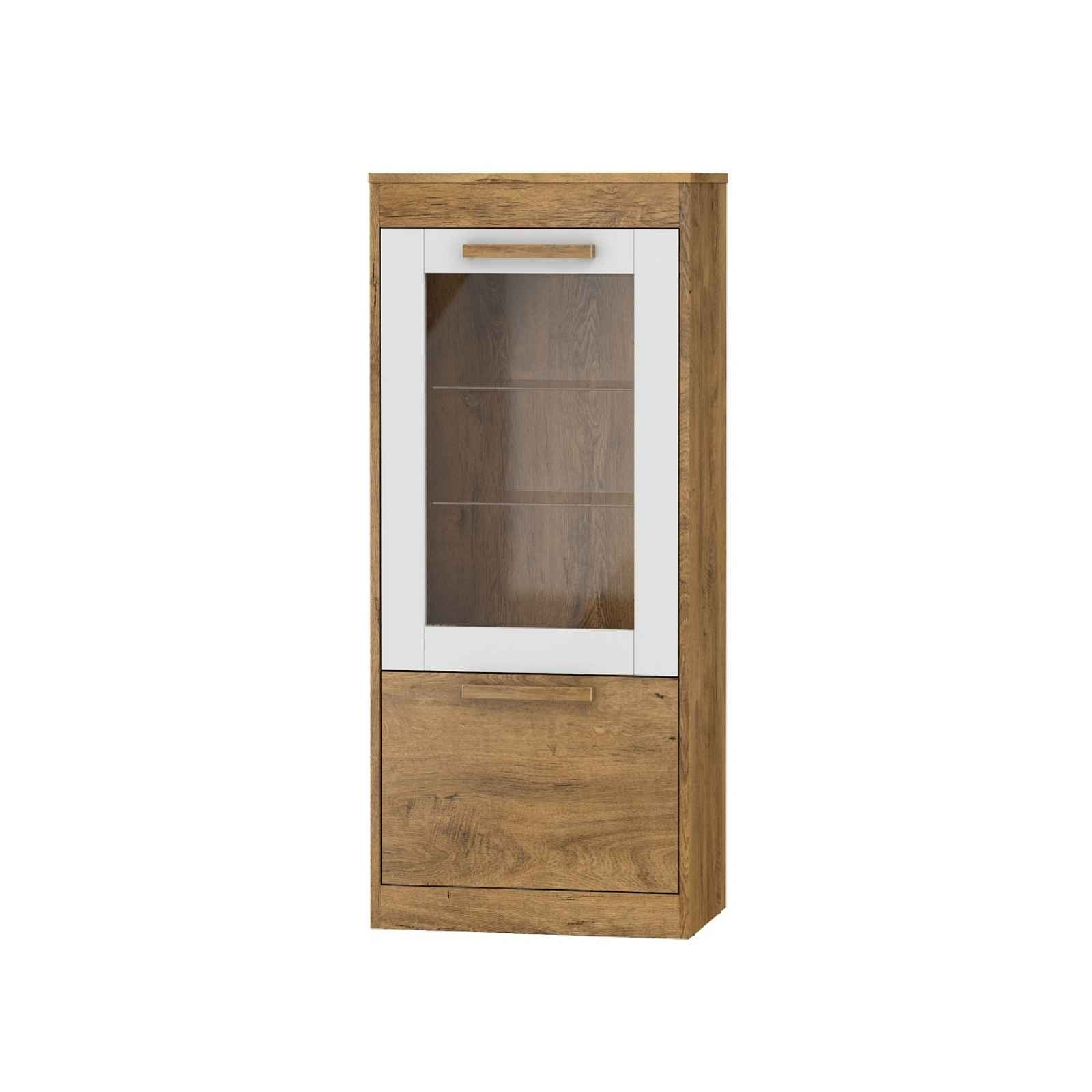 Moderní vitrína Barva: dub burgundský/bílý lesk Rozměr (šxvxh): 52 x 121 x 36 cm Materiál: LTD, ABS hrany, sklo Tiché zavírání. Dodáváno v demontu. Záruka 5 let.