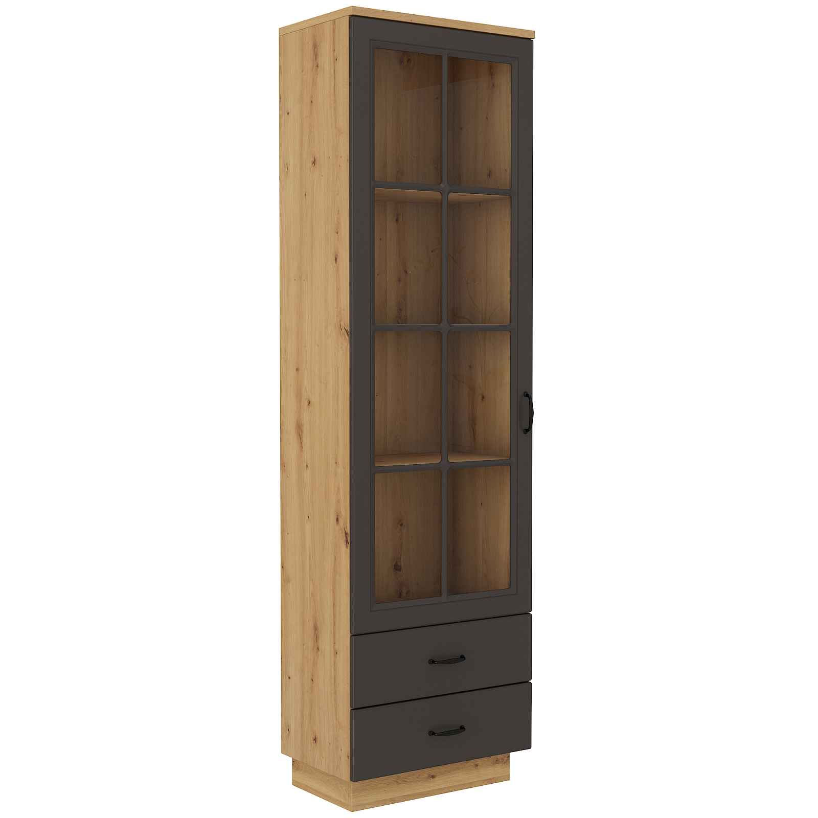 Krásný stylový nábytek Florián Korpus: dub artisan Dvířka: grafit MDF/sklo Kovové madlo Nábytek dodáván v demontu Rozměry: (šířka x výška x hloubka) 60x210x37,2 cm