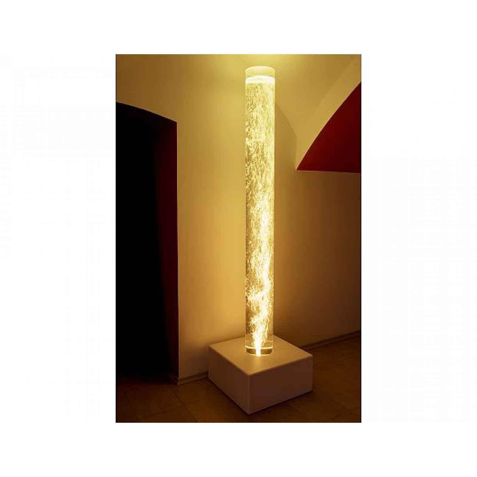 Originální designová dekorace se zvukem bublající vody ve vodním válci o výšce 200 cm, kterým prozáříte místnost vlnícím se světlem širokého barevného spektra. Válcem znevšedníte jakýkoli prostor a zároveň mu dodáte příjemnou atmosféru. Vodní válec české výroby nabízíme ve 2 průměrech zakotvených standartně v soklu z MDF lakovaném do bílé nebo černé barvy (viz varianty produktu). V ceně vám dodáme vše potřebné k instalaci, provozu i ovládání. Dálkovým ovladačem snadno a pohodlně nastavíte intenzitu světla a barvu podsvícení dle aktuální nálady. Stisknutím jednoho tlačítka si naprogramujete automatické střídání barev nebo trvalé podsvícení jednou barvou. Poté už se můžete nechat unášet příjemnými pocity při pohledu na plovoucí barevné bubliny a relaxovat v obývacím pokoji či v ložnici při tichém zvuku bublající vody, který má blahodárné účinky na lidský organismus. Ručně vyráběný vodní válec vysoké kvality dodáváme v demontu. Díky speciální náplni mají válce naprosto bezúdržbový provoz, vodu tedy rozhodně nemusíte po nějakém čase měnit. Navíc vám poskytneme celoživotní servis. Vodní válce jsou samozřejmě vysoce stabilní. Jestliže i přesto potřebujete jistotu, např. v případě umístění válce do dětského pokoje, zařídíme vám pevnou instalaci s uchycením vodního válce ke zdi v jeho vrchní části. Rozměry: - průměr válce 15 cm (20 cm) - výška válce 200 cm - šířka soklu 65 cm - hloubka soklu 27 cm - výška soklu 65 cm - hmotnost vč. soklu cca 70 kg V naší nabídce najdete vodní válce s výškou 100 cm, 150 cm a 175 cm. Poskytujeme však i individuální řešení na zakázku. Jednotlivé válce můžete libovolně kombinovat, sokl vyrobíme v jakémkoli rozměru, tvaru či designu. Celý válec můžeme zabudovat zcela samostatně bez soklu, podmínkou je pouze prostor 15 cm pod válcem. Inspirovat se můžete v naší bohaté galerii. V případě zájmu nás neváhejte kontaktovat. Podívejte se, jak vypadá náš vodní válec v provozu.