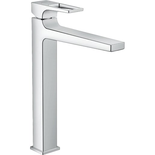 Páková stojánková vysoká umyvadlová baterie s clic-clacem. V chromovém provedení. Průtok baterie je 5 litrů/minutu. Výška baterie je 32,6 cm. Ramínko je ve výšce 25,9 cm.