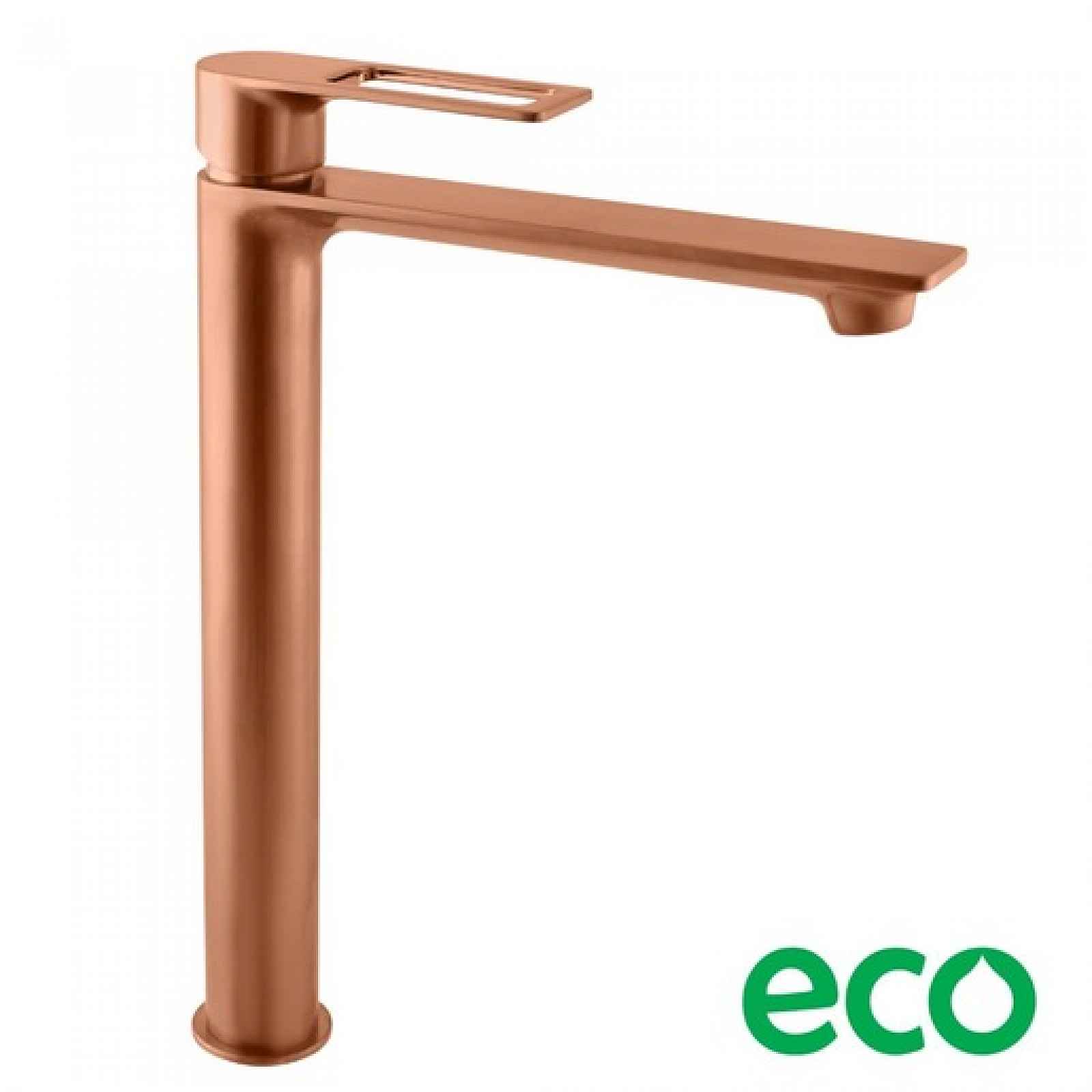 Páková stojánková vysoká umyvadlová baterie bez výpusti v barevném provedení kartáčovaná zlatá růžová. Průtok baterie je 8 litrů/minutu. Výška baterie je 31,2 cm. Ramínko je ve výšce 26,1 cm. S matným povrchem.