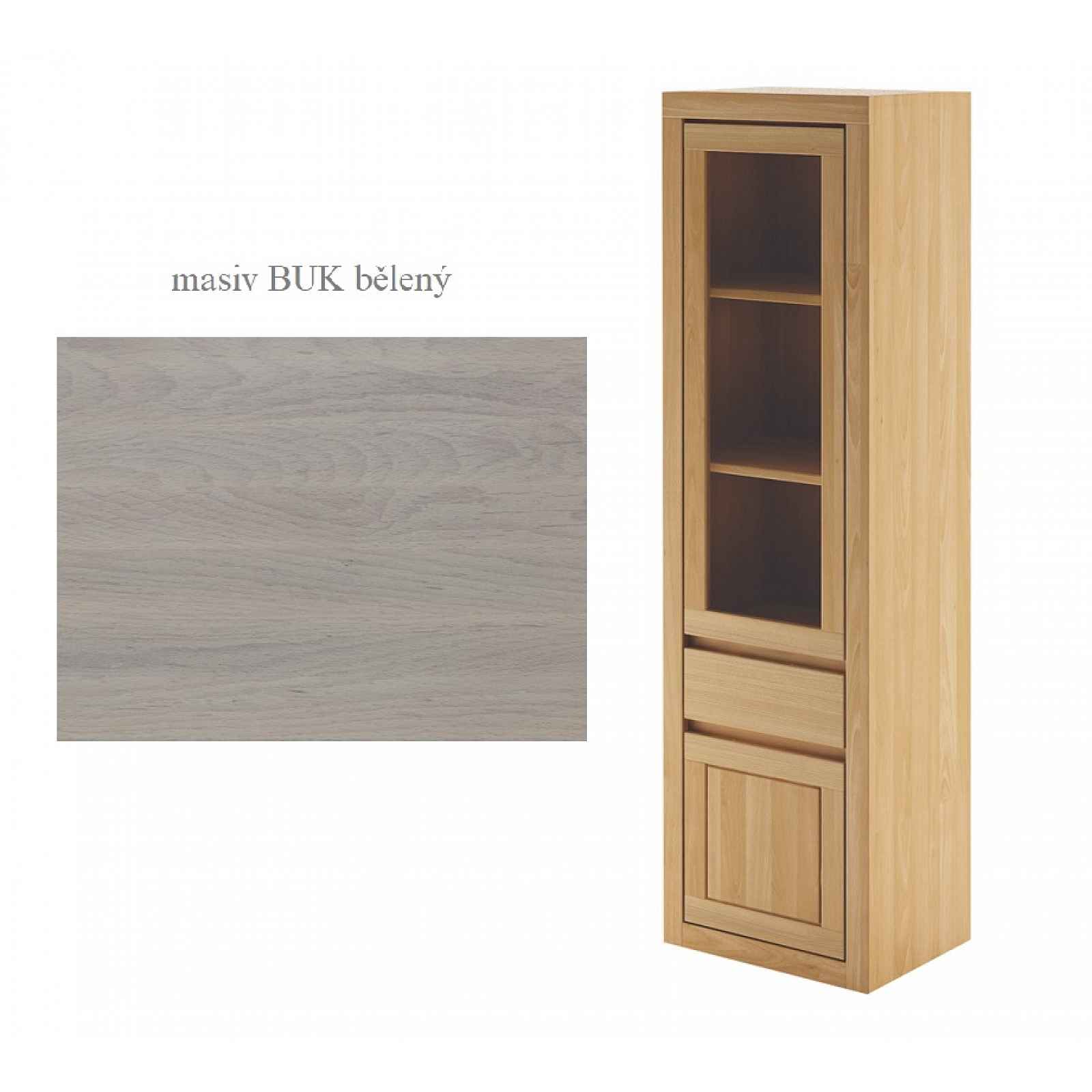 Prosklená vitrína z masivního bukového dřeva v levém povedení.Umožní vytvořit v jídelně nebo obývacím pokoji hřejivou, útulnou, ale zároveň stylovou a moderní dekoraci.Má prosklenou vitrínu, zásuvku a uzavřenou polici.Rozměry (šxvxh): 56 x 190 x 41 cmMateriál: masiv bukBarva: buk bělený viz vzorek mořeníDodáváno v demontu