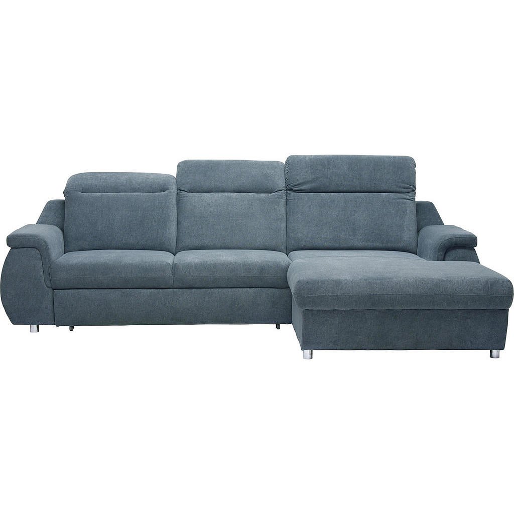 Tato sedací souprava perfektně padne do Vašeho obývacího pokoje. Nábytek ve tvaru L s rozměry ramen cca 290 x 193 cm má potah z odolného polyesteru v neutrální šedé barvě a k tomu ladí kulaté nohy v barvě chromu. Čalounění z pěnové hmoty, spodní pružení Nosag a polohovatelné záhlaví Vám umožní velmi pohodlný posez a v případě potřeby můžete sedačku přeměnit na pohodlné lůžko s rozměry cca 120 x 216 cm. Výhoda: díky potaženým zádům můžete sedačku umístit kdekoliv v prostoru dle svého přání. Pořiďte si tuto komfortní sedací soupravu! Za příplatek jsou k dostání v našich obchodních domech různé varianty, barevné alternativy a doplňkový nábytek. Zrcadlově obrácené provedení je k dostání pouze v našich obchodních domech.
