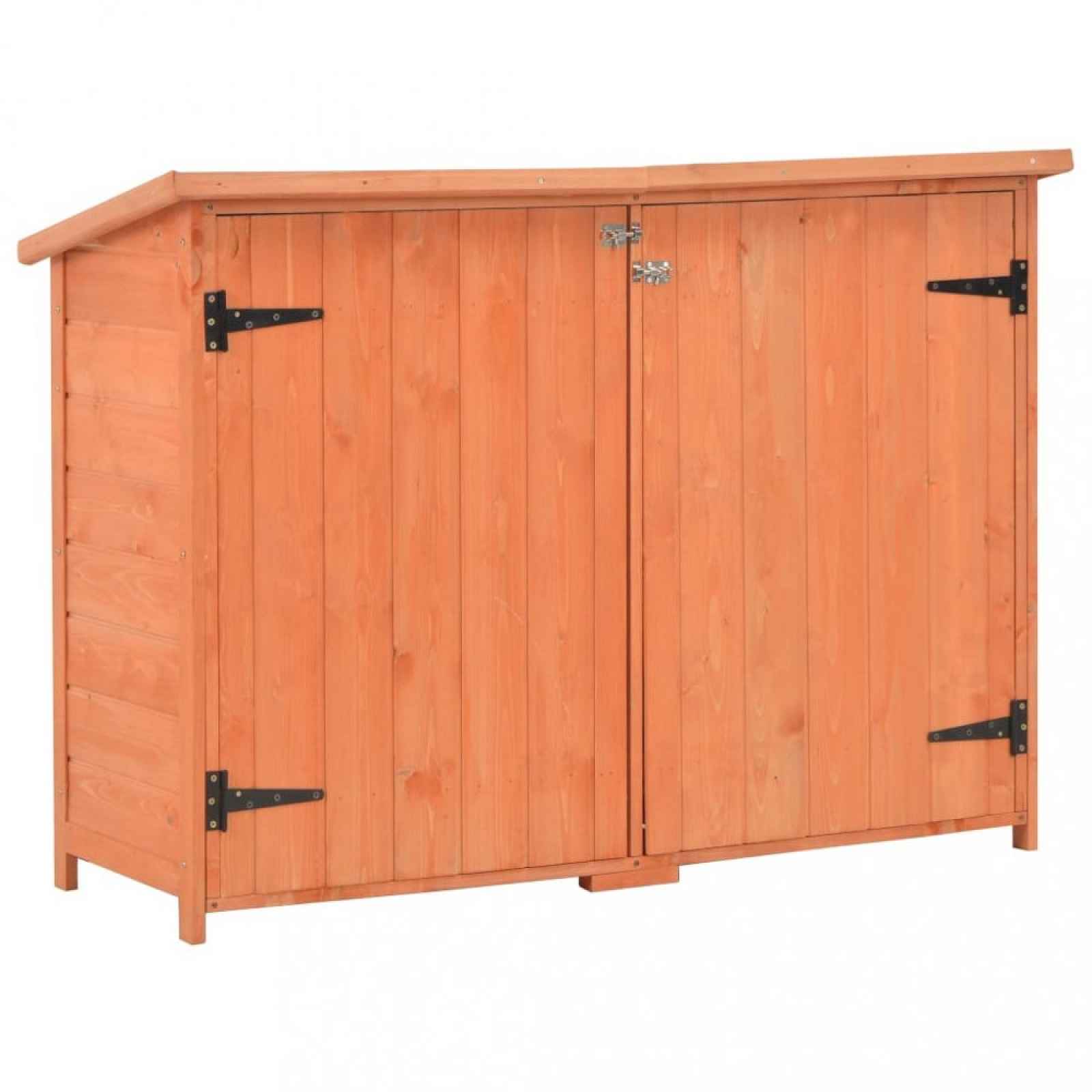 Tato dřevěná zahradní kůlna má kompaktní design a elegantní vzhled, a je tudíž vhodná i do méně prostorných zahrad. Kůlna nabízí dostatečný úložný prostor na vaše zahradní nástroje a vybavení, takže je budete mít vždy po ruce. Dřevěná kůlna je pevná a voděodolná. Její střecha je vyrobena z nepromokavé polyesterové tkaniny, která obsah přístřešku ochrání před vlhkostí. Montáž kůlny je velmi snadná. Barva:přírodní hnědá Materiál:dřevo / překližka Rozměry:šířka: 120 cmhloubka: 50 cmvýška: 91 cm Hmotnost:21,1 kg Balení obsahuje:2 ks police a 2 ks dveře Dodáváno v demontu.