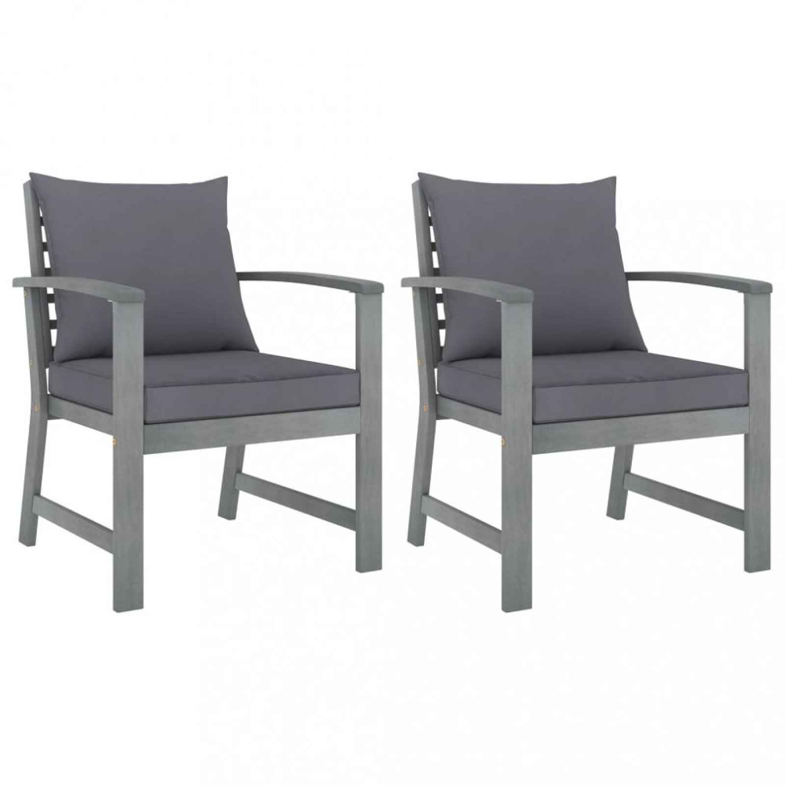 Tato dřevěná zahradní křesla v rustikálním stylu se stanou ústředním prvkem vaší zahrady nebo terasy. Set křesel je vyrobený z vysoce kvalitní masivní akácie, tropického tvrdého dřeva, které je odolné vůči povětrnostním vlivům a má velmi dlouhou životnost. Balení obsahuje sedák a polštáře na opěradlo pro více pohodlí a podpory. Posaďte se k příjemné večeři pod širým nebem nebo jen relaxujte a užívejte si teplé počasí s touto sadou klasických zahradních křesílek. Tento kus lze kombinovat s dalšími produkty v našem obchodě, aby si zákazník mohl sestavit vlastní set.Barva:šedá / tmavě šedápřírodní / krémovápřírodní / tmavě šedáVýběr barvy zvolte ve variantě produktu. Pokud Vámi vybraná varianta není ve výběru, je dočasně nedostupná. Materiál: masivní akáciové dřevo s povrchovou úpravou / látka (100% polyester) Rozměry: šířka: 60,5 cm hloubka: 60,5 cm výška: 81 cm výška sedu: 34 cmtlouštka podušek na sedák: 8 cmtloušťka podušek na opěradlo: 15 cmHmotnost: 17 kgDodáváno v demontu.Balení obsahuje: 2 x zahradní židle, 2 x poduška na sedák, 2 x poduška na opěradlo