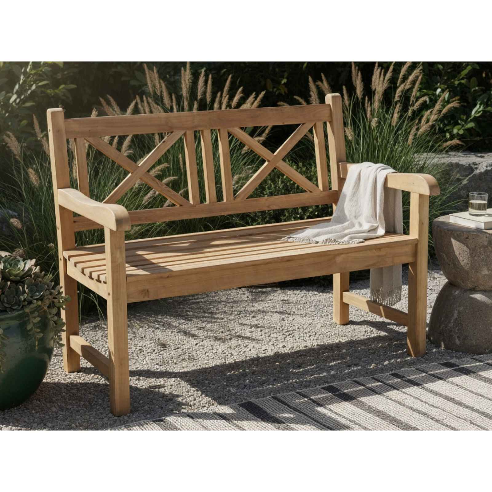 Zahradní lavice o šířce 120 cm je vyrobena z teakového dřeva a přirozeně zapadne do venkovního prostředí. Je 2místná a využitelná samostatně nebo se stolem. Zahradní lavice o šířce 120 cm je vyrobena z teakového dřeva a přirozeně zapadne do venkovního prostředí. Lavice je 2místná a využitelná samostatně nebo se stolem. Nábytek z teakového dřeva představuje ideální volbu pro ty, kteří hledají spojení přírodní krásy, funkčnosti a dlouhé životnosti. Teakové dřevo je ceněno pro svou mimořádnou tvrdost, vysokou odolnost vůči vlhkosti, slunečnímu záření i změnám teplot, díky tomu je se vyznačuje dlouhou životností a to i při pravidelném venkovním používání. - konstrukce: teakové dřevo - barva: hnědé přírodní odstíny - 2místná - s bočními područkami - stabilní - doporučená nosnost do 100 kg/osoba - výhody teakového dřeva: tvrdost, odolnost vůči vlhkosti, slunečnímu záření i změnám teplot, dlouhá životnost - doporučení: pro zachování správné kondice dřeva doporučujeme každoročně natřít povrch speciálním olejem na dřevo a zahradní nábytek, který je běžně k dostání v hobby marketech - dodáváno v demontu