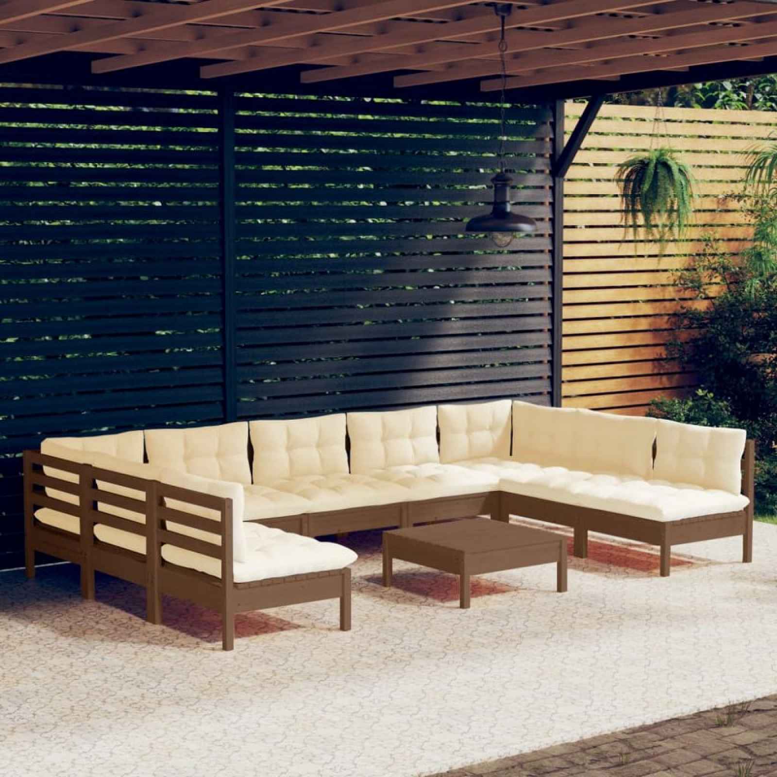S touto zahradní sedací soupravou můžete v klidu odpočívat a užívat si krásného počasí, povídat si s rodinou a přáteli anebo si na chvilku zdřímnout. Zahradní sedací souprava je vyrobená z masivního borového dřeva, které je pevné a zaručuje výbornou stabilitu. Podušky vám poskytnou maximální pohodlí. Pohovku můžete navíc zkombinovat s dalšími modulárními segmenty a vytvořit si tak sedací soupravu přesně podle vašich představ! Poznámka: Abyste prodloužili životnost vašeho zahradního nábytku, doporučujeme vám pravidelně ho čistit a nenechávat ho zbytečně venku nechráněný. Čistění: Použijte jemný mýdlový roztok Skladování: Je-li to možné, skladujte ho na chladném a suchém místě v interiéru. Pokud výrobek skladujete venku, chraňte ho pod voděodolným krytem. Po dešti nebo sněžení setřete z povrchů přebytečnou vodu či sníh. Zajistěte dostatečnou cirkulaci vzduchu, aby se nábytek nepoškodil vlhkostí. Barva:přírodní dřevo / krémovápřírodní dřevo / šedábílá / antracitšedá / antracithnědá / krémováčerná / antracitVýběr barvy zvolte ve variantách produktu. Pokud Vámi vybraná varianta není ve výběru, je dočasně nedostupná. Materiál:masivní borovice / textil (100% polyester)Rozměry rohové / středové pohovky:šířka: 63,5 cmhloubka: 63,5 cmvýška: 62,5 cm Rozměry podnožky / stolku:šířka: 63,5 cmhloubka: 63,5 cmvýška: 28,5 cm rozměry podušky na sedák: 60 x 60 x 5 cm (Š x H x T)rozměry podušky na opěradlo: 60 x 32 x 5 cm (Š x H x T) Hmotnost:123 kg Dodáváno v demontu Balení obsahuje: 2 x rohová pohovka, 7 x středová pohovka, 1 x podnožka/stolek, 10 x poduška na sedák, 11 x poduška na opěradlo