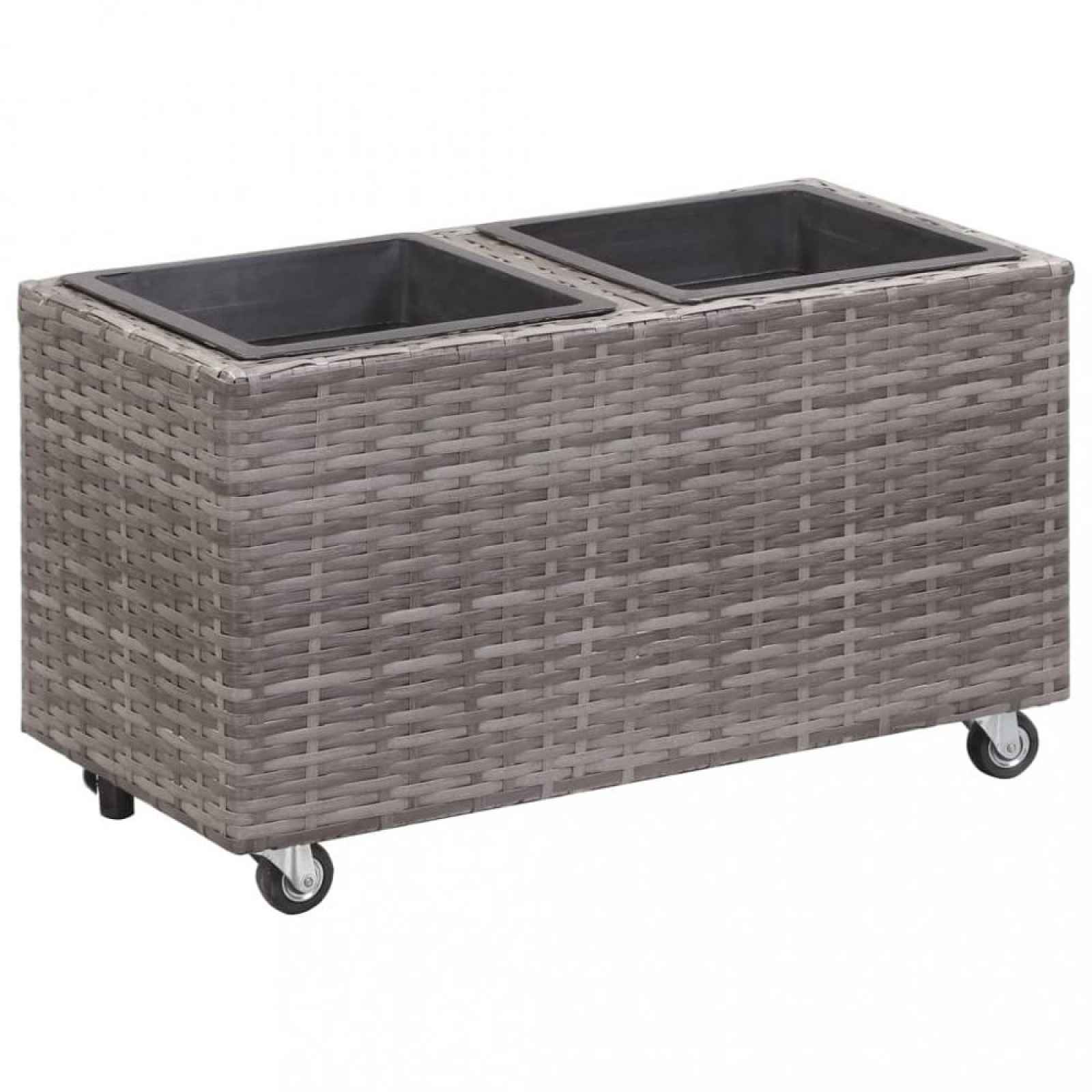 Osvěžte svou zahradu, terasu nebo balkon s tímto překrásným truhlíkem!Truhlík je vyrobený z voděodolného polyratanu. Těsně splétaná struktura vytváří hladký povrch a zaručuje výtečnou stabilitu. Uvnitř se nachází dvě nádoby / květináče, které prodlužují životnost produktu. Můžete si do nich zasadit celou řadu zelených rostlinek a květin. Design s kolečky je navíc mimořádně praktický. Balení obsahuje: 1x polyratanový truhlík, 2 plastové květináče a 4x kolečka.Barva: šedáčernáVýběr barvy zvolte ve variantě produktu.Materiál: umělý ratan / plastRozměry truhlíku: šířka: 60 cmhloubka: 30 cmvýška: 36 cmRozměry květináče: šířka: 26 cmhloubka: 26 cmvýška: 24 cmHmotnost:5,3 kg