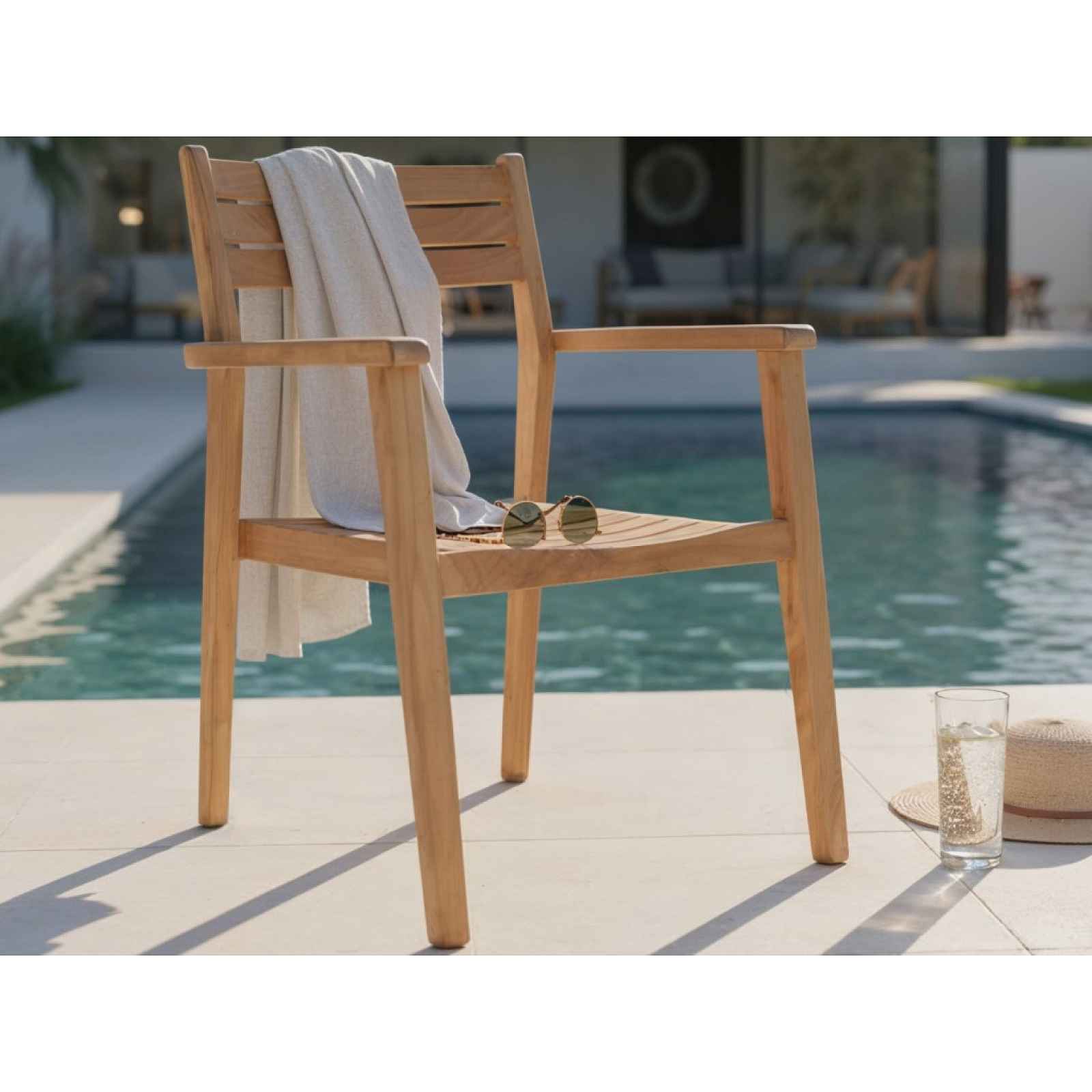 Zahradní židle s područkami z teakového dřeva představuje ideální volbu pro ty, kteří hledají spojení přírodní krásy, funkčnosti a dlouhé životnosti. Zahradní židle s područkami z kvalitního teakového dřeva představuje ideální volbu pro všechny, kteří hledají spojení přírodní krásy, funkčnosti a dlouhé životnosti. Její nadčasový design přirozeně zapadne do prostředí zahrady i terasy a vytvoří harmonické místo pro rodinné obědy, letní grilování i posezení s přáteli. Tato zahradní jídelní židle poslouží buď samostatně a nebo společně u jídelního stolu, kde si příjemně posedíte během rodinného oběda, letního grilování i posezení s přáteli. Teakové dřevo je ceněno pro svou mimořádnou tvrdost, vysokou odolnost vůči vlhkosti, slunečnímu záření i změnám teplot, díky tomu je se vyznačuje dlouhou životností a to i při pravidelném venkovním používání. - konstrukce: teakové dřevo - barva: hnědé přírodní odstíny - silné hranaté nohy - boční područky - žebrované opěradlo - výška sedu: 45 - stabilní - doporučená nosnost do 110 kg - výhody teakového dřeva: tvrdost, odolnost vůči vlhkosti, slunečnímu záření i změnám teplot, dlouhá životnost - doporučení: pro zachování správné kondice dřeva doporučujeme každoročně natřít povrch speciálním olejem na dřevo a zahradní nábytek, který je běžně k dostání v hobby marketech - dodáváno v demontu