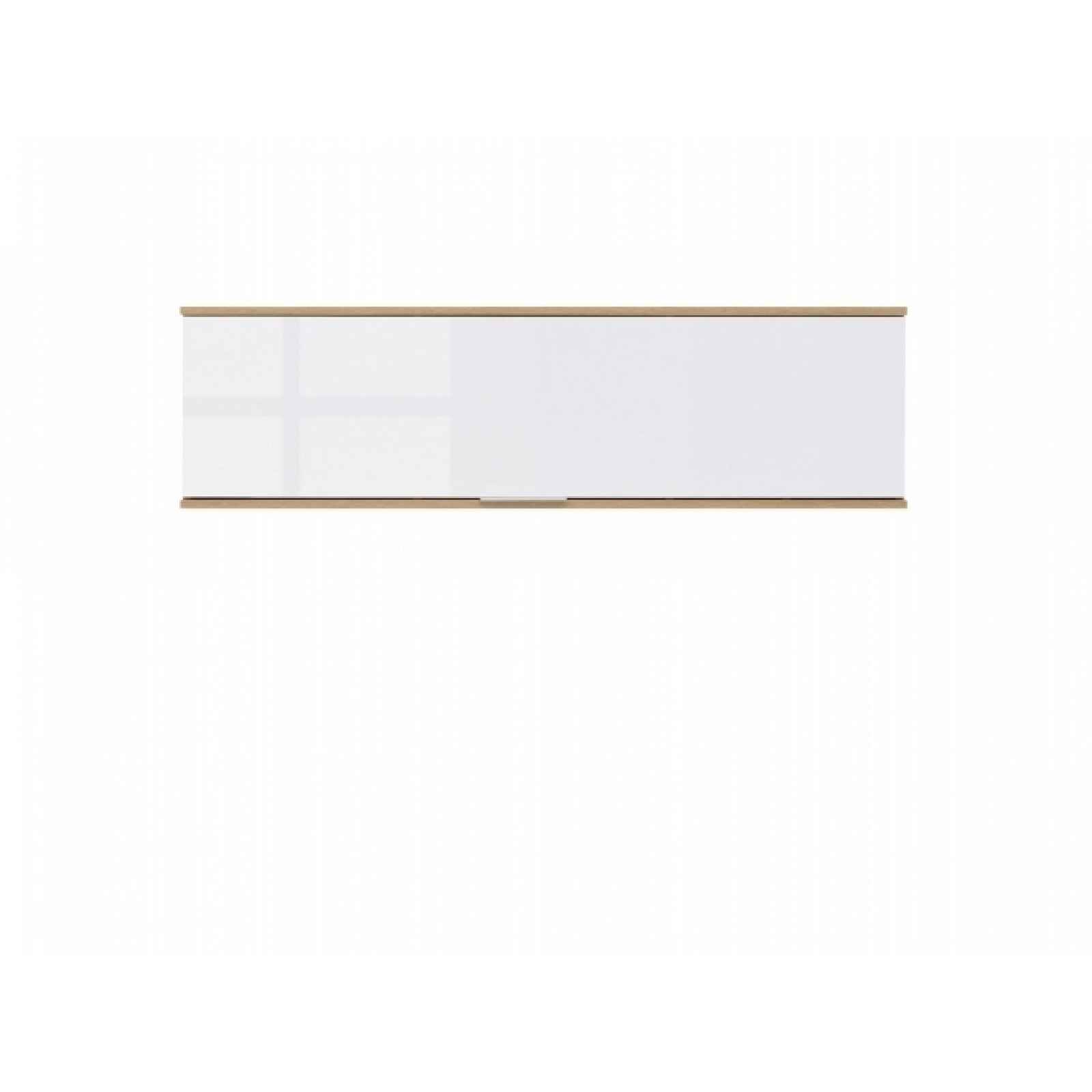 Elegantní a praktická závěsná skříňka.Vnitřní prostor je rozdělený na 3 části. Dvířko se vyklápí směrem nahoru pomocí plynového pístu.Materiál: laminoBarva: dub wotan/bílý leskRozměry (šxvxh): 135 x 37 x 41 cmCharakter nábytku zdůrazňuje zajímavé provedení úchytů, které jsou spojeny s horním okrajem jednoduchých předních ploch. Jsou nenápadné a velmi vkusné.Max. nosnost skříňky je 20 kg.Dodáváno v demontu.
