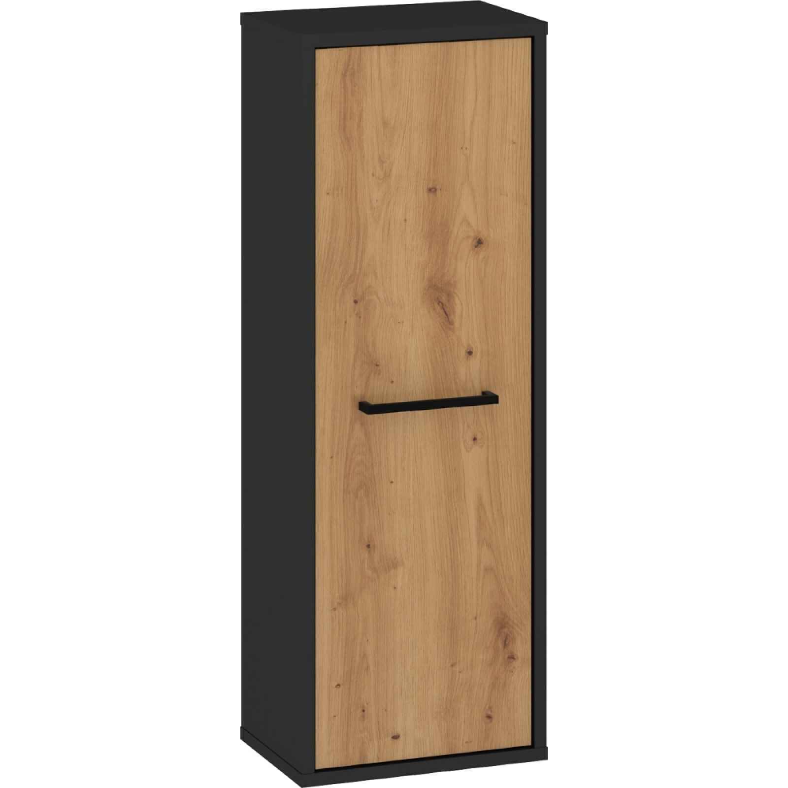 Závěsná policová skříňka s dvířky Barva: - černá/dub artisan - úchytky: černá Rozměr (šxvxh): 32 x 90 x 25 cm Materiál: lamino 16 mm, ABS hrany Disponuje systémem tichého dovírání. Dodáváno v demontu.Záruka 5 let.
