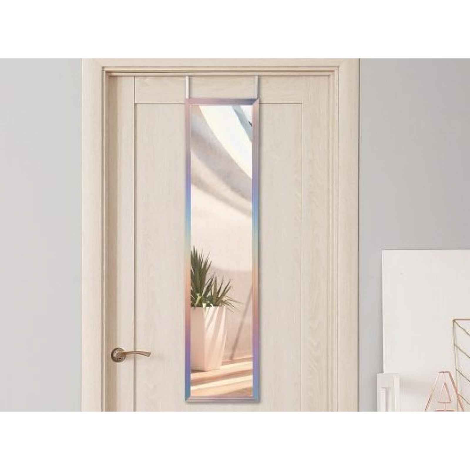Úzké zrcadlo 30x120 cm v duhovém rámu je vhodné na dveře i na zeď. Praktické a elegantní řešení pro váš domov. Úzké zrcadlo v duhovém rámu nabízí elegantní a praktické řešení pro váš domov. Zrcadlo o rozměru 30×120 cm je určeno primárně pro zavěšení na dveře, ale lze jej také snadno připevnit i na stěnu. Perfektní do předsíně, ložnice, koupelny i na dveře skříní – flexibilní a snadno přesunutelné. - nástěnné zrcadlo/dveřní zrcadlo v rámu - materiál: zrcadlové sklo, polystyrol - barva: vícebarevná - flexibilní a univerzální montáž: na horní hranu dveří/na stěnu, vertikální/horizontální orientace - snadná instalace: součástí balení jsou háky pro zavěšení na dveře, integrované úchyty pro montáž na zeď