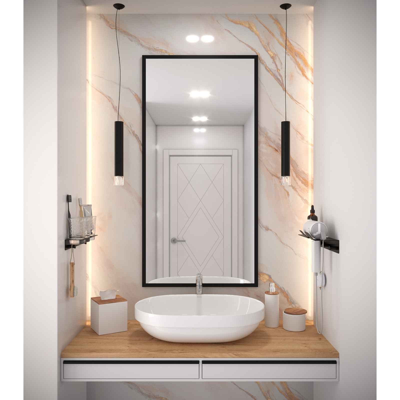 Designové zrcadlo, které je skvělým doplňkem do interiéru.Tloušťka zrcadla je 4 mmProvedení černý matZákladna z laminované dřevotřískové desky 16 mmUniverzální montáž - vertikálně i horizontálněDva závěsy na hmoždinkyTloušťka zrcadla: 4 mmšířka x výška hloubka60x160x2,1 cm