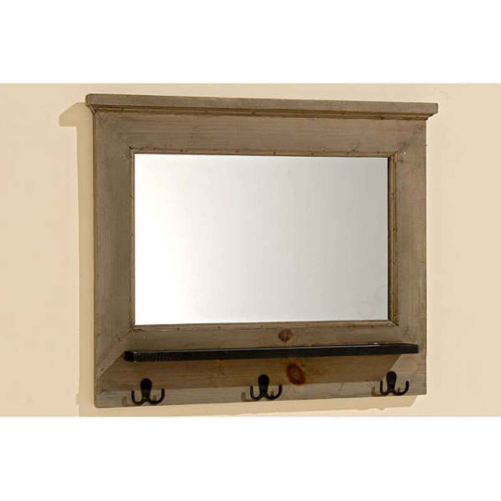 Zrcadlo v dřevěném rámu s háčky.