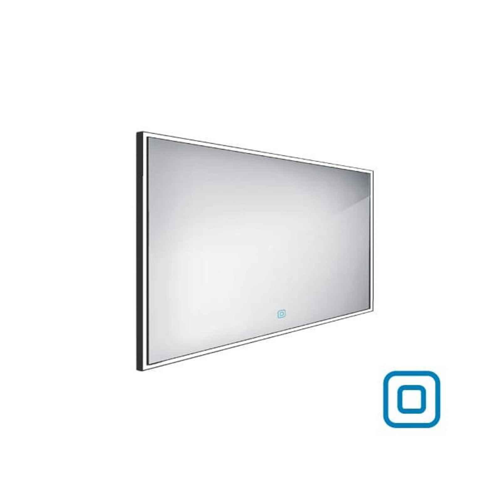 Obdélníkové zrcadlo s LED osvětlením se senzorem o rozměru 120x70 cm. Rám zrcadla v černé barvě. Možnost nastavení barevné teploty svícení v rozmězí od 2 700 - 6 000 K. S krytím IP44, je chráněno proti stříkající vodě. Orientace zrcadla na šířku.