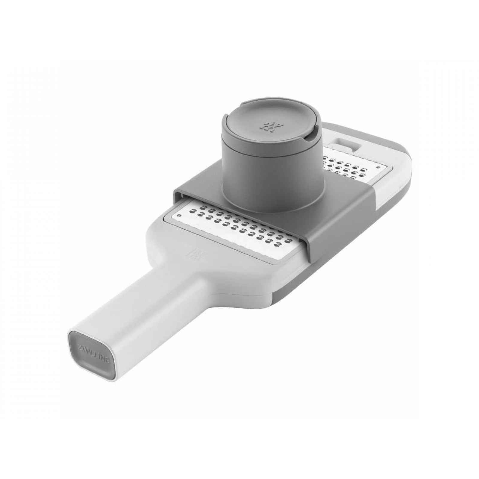 Kompaktní univerzální pomocník do vaší kuchyně: struhadlo Zwilling Z-Cut je multifunkční krouhač, struhadlo a plátkovač v jednom.Příprava zdravých a čerstvých pokrmů je nyní ještě rychlejší a ještě snazší. Při vývoji patentované technologie dvoucestného ostří byly využity dlouholeté zkušenosti s výrobou nožů. Obousměrné využívání ostří výrazně zvyšuji efektivitu strouhání, krouhání i plátkování. Výměnné ostří: strouhá, krouhá, plátkuje. 4 vyměnitelná ostří (jemné struhadlo, středně-hrubé struhadlo, hrubé struhadlo a plátkovač) pomohou rychle nastrouhat malé, ale i větší množství surovin. Nastrouhat, nakrouhat či naplátkovat můžete nejen všechny druhy zeleniny a ovoce, poloměkké a tvrdé sýry, ořechy, ale i čokoládu či tvrdé koření.Výměnná ostří můžete skladovat přímo v zásobníku, aby byla vždy po ruce. Bezpečí na první místě. Potraviny jednoduše vložíte do odnímatelného nástavce a můžete začít krouhat. Díky vestavěné ochraně budou vaše ruce a prsty vždy v bezpečí, se strouháním tak můžou pomáhat i děti. Zásobník na nastrouhané potraviny je rovněž odnímatelný, strouhat tak můžete do misky či přímo na talíř. Pogumovaná protiskluzová základna je důmyslným detailem pro ještě vyšší bezpečnost při používání. Pasuje na dózy Zwilling Fresh & Save. Multifunkční struhadlo perfektně pasuje na vakuové dózy Fresh & Save velikosti M a L. Zeleninový salát si tak můžete připravit přímo do dózy, ve které jej zavakuujete a pak v ní i odnesete s sebou do práce. Zwilling - odborník na ostří. Struhadlo Z-Cut bylo vyrobeno s využitím jedinečného know-how společnosti Zwilling v oblasti zpracování oceli a výroby dokonale ostrých nožů. Od plátkování, jemného, středně hrubého až po hrubé strouhání, si vždy můžete vychutnat snadnou obsluhu a rychlost zpracování surovin díky preciznímu dílenskému zpracovanému struhadla. Předností ale není jen dokonalé ostří, ale i minimalistický design od milánského studia Matteo Thun & Antonio Rodriguez, který usnadňuje údržbu a mytí struhadla. Pro vyšší bezpečnost při používání oceníte dokonalou ergonomii a protiskluzovou úpravu.Struhadlo Z-Cut, navržené v Německu, nabízí jedinečnou technologii strouhání, díky které hravě nastrouháte i větší množství surovin. Díky propracované technologii ostří, které umožňuje dvoucestné strouhání – tedy jak směrem dolů, tak i nahoru, potraviny nastrouháte rychle, snadno a díky dokonale ostrým hrotům prakticky bez námahy.4 výměnná ostří: jemné, středně hrubé a hrubé strouhání a plátkováníDokonalé ostří Zwilling Z-Cut: dvoucestné strouhání (směrem nahoru i dolu)Rychlé, efektivní a bezpečné strouhání bez zadrháváníKompatibilní s dózami velikosti M a L z vakuovacího programu Fresh & SaveOdnímatelná ochrana prstů pro vyšší bezpečnostIntegrovaný úložný box: aby pracovní deska zůstala čistá i pro praktické uskladnění výměnných ostříProtiskluzová úprava pro bezpečné používání v jakémkoliv úhlu a poziciRobustní, odolné a stabilní provedení konstrukceVhodné do myčky nádobí Technické specifikace:. Hmotnost 0,4 kgRozměry (v x š x d): 30 x 11,4 x 9,2 cmMateriál: nerezová ocel, plast (matný)